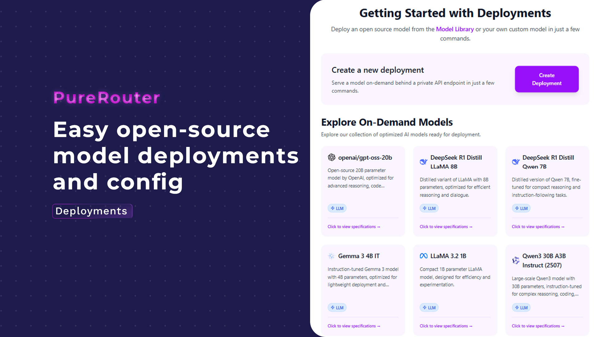 Whether you’re scaling your AI stack or optimizing a single use case, PureRouter lets you make smarter choices without rewriting your codebase.