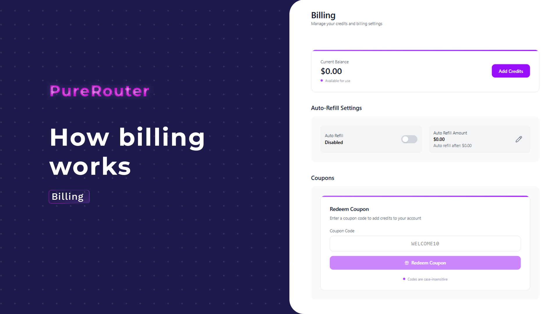 You heard right, PureRouter works with a credit system, so NO subscription traps and NO surprise bills. Just usage-based pricing that makes sense.