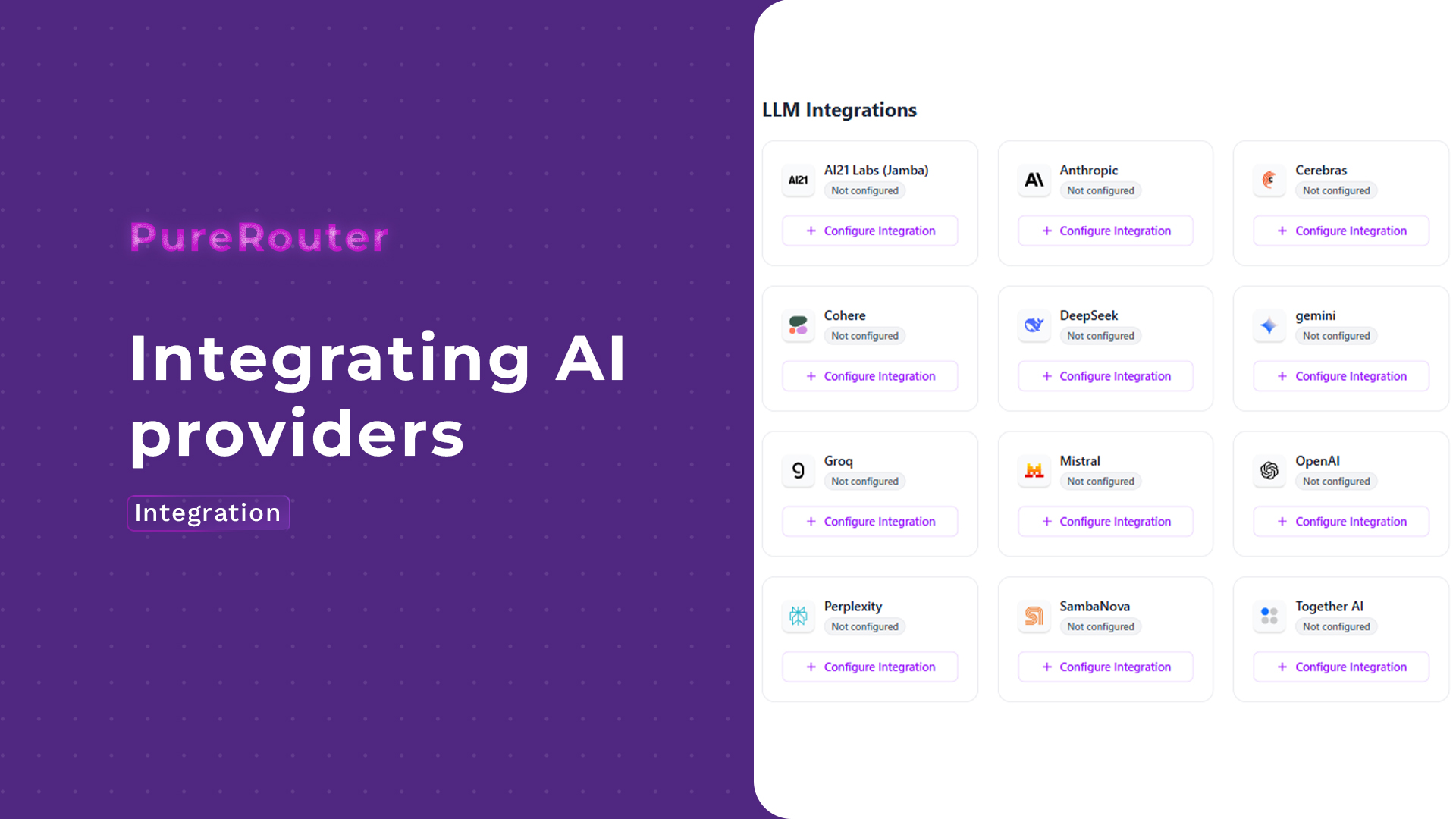 PureRouter is production-ready out of the box. It works using a bring-your-own-key (BYOK) model, meaning you can connect your own API keys from providers like OpenAI, Mistral, Cohere, and others.