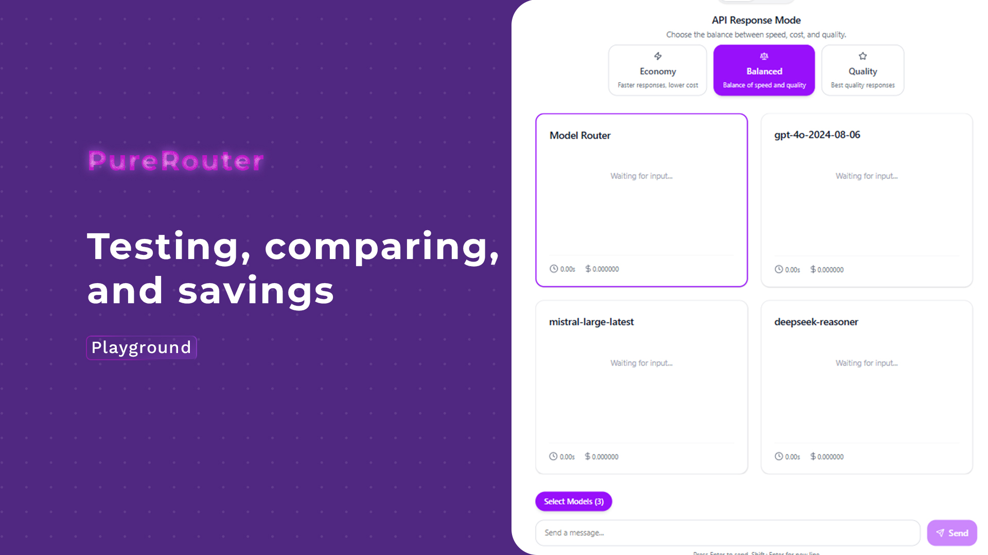 Because building with AI shouldn’t mean choosing between cost, speed, and performance. PureRouter gives you the freedom to route based on what you value, all in a single, developer-friendly interface.